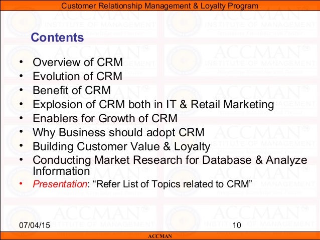 The integration of customer service and quality with marketing. Crm course outline by ashwini kumar rath course description customer relationship management crm is one of the most important components for sustenance and growth of an organization. Customer relationship management training overview customer relationship management trainingcrm is one of the most important components for sustenance and growth of an organization.